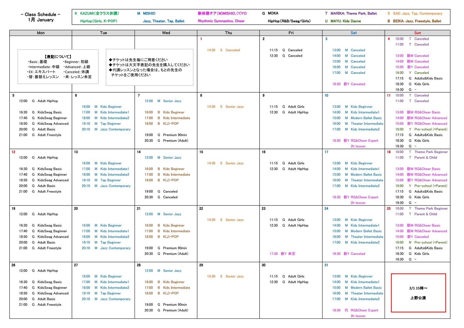 31日:「RG&Cheer」はしゅんすけ先生の代講で、上野公演リハを実施します。