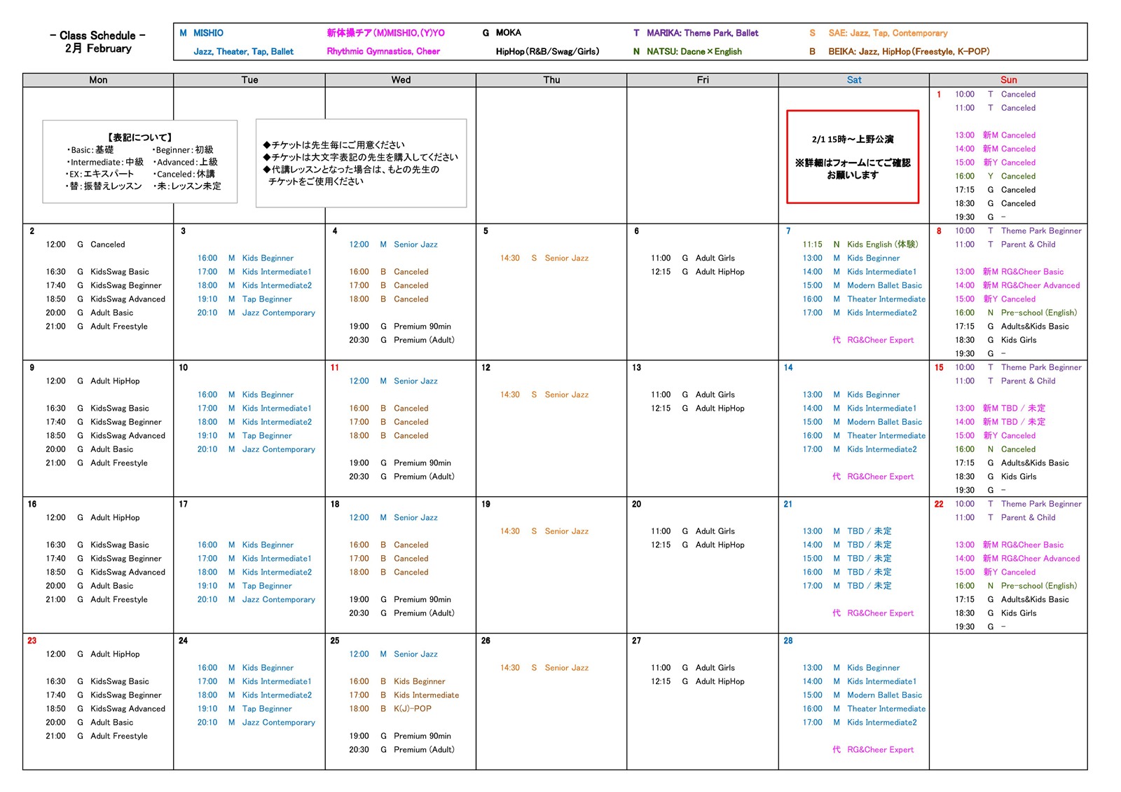 ・「RG&Cheer」は、Sae先生、しゅんすけ先生の代講で実施します。